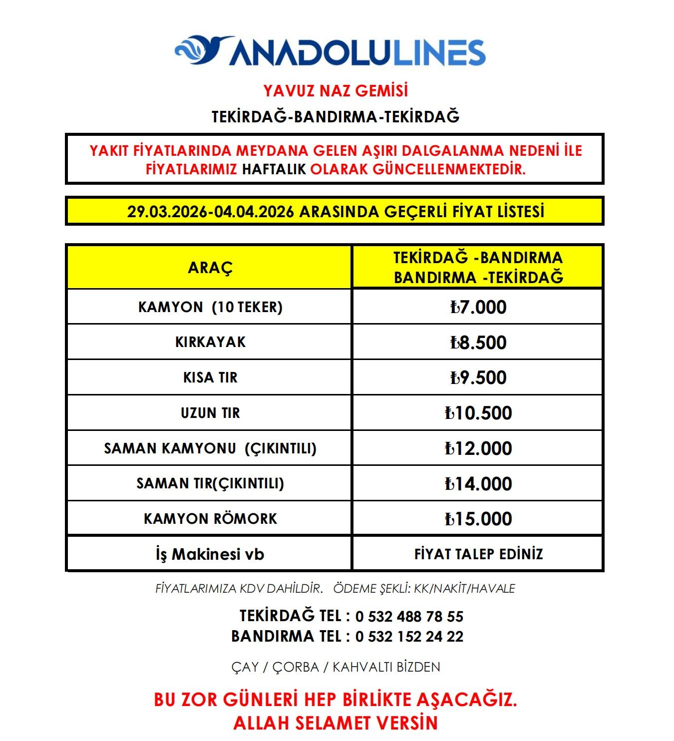 TEKİRDAĞ-BANDIRMA SEFERLERİ BAŞLAMIŞTIR